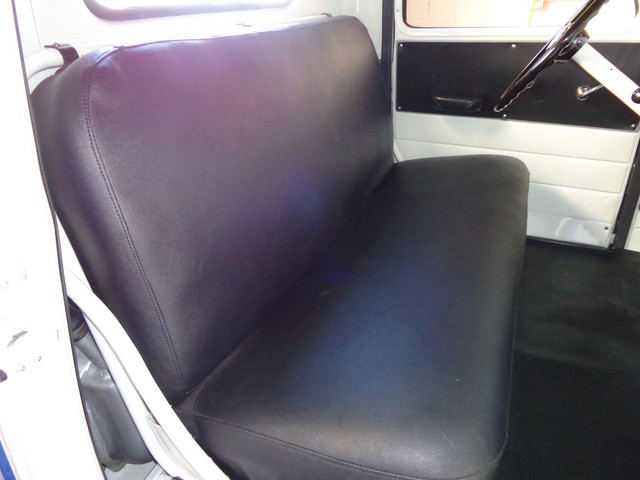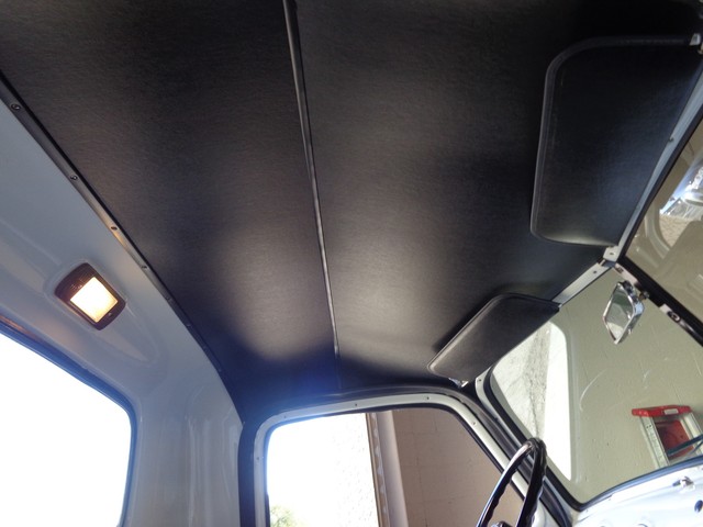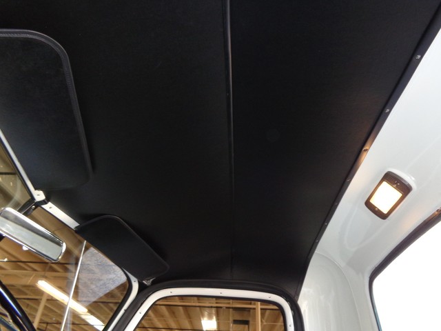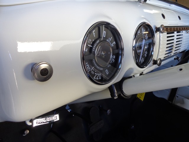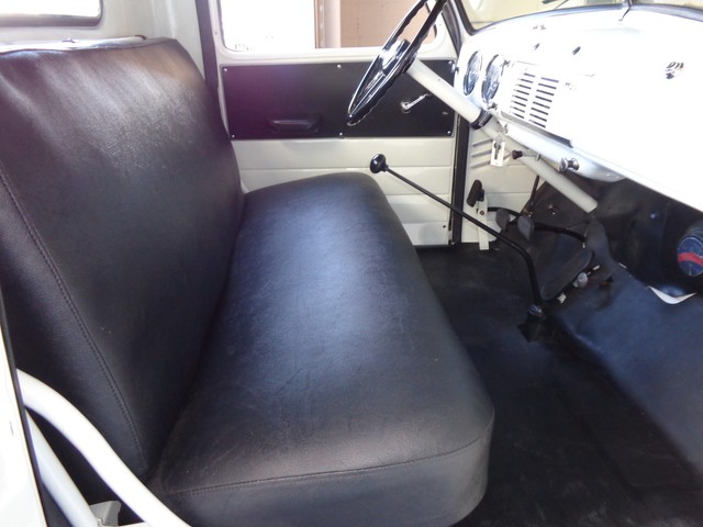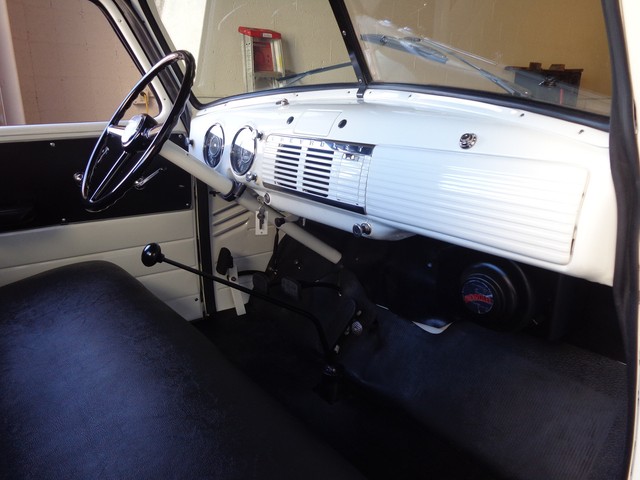 The interior was restored with all new components.  The interior of the cab was repainted in custom Custard with new black seat upholstery, door panels, rubber mat and steering wheel.  Other new components include window regulators, door handles, window cranks, dash trim and glove box door.  The speedometer and gauges are brand new.