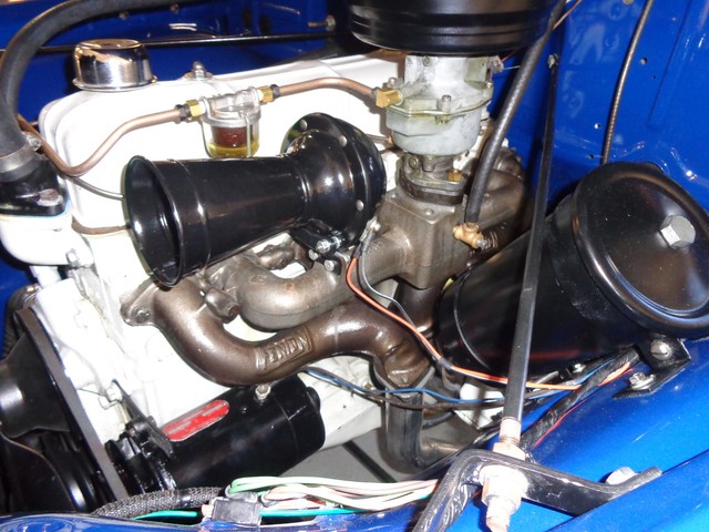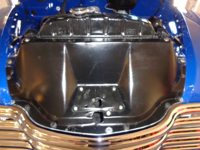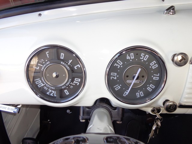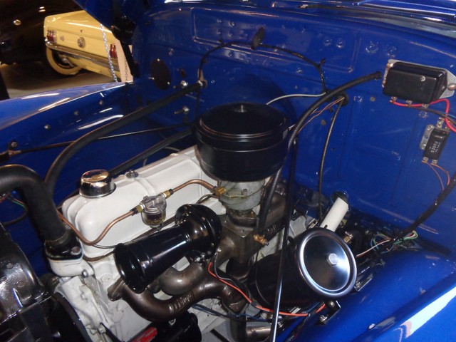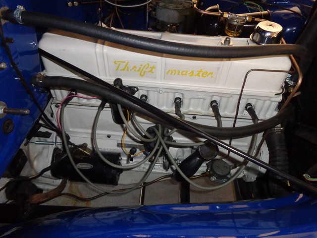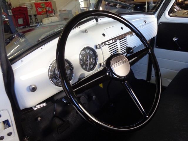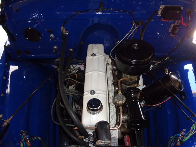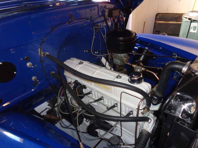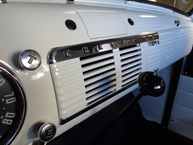 It has a stock Chevrolet 216 inline six with a custom Fenton header and new dual exhaust.  Mechanically, it is in very good running and driving condition.  It starts right up with no knocks or smoke.  The engine was nicely detailed with several new components.  It has all new wiring.  The 4-speed manual transmission shifts smooth and has a new clutch.  The stock drum brakes are new front and rear.  The original steel wheels were sandblasted and painted.  New Coker wide whitewall tires were mounted with new Chevrolet caps and trim rings.