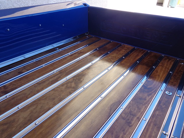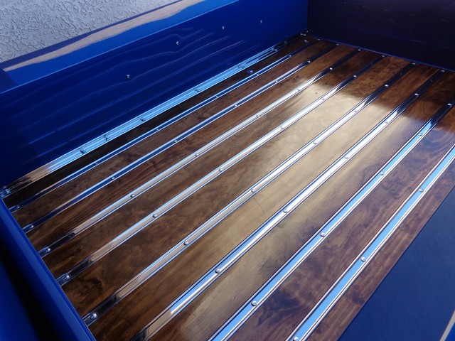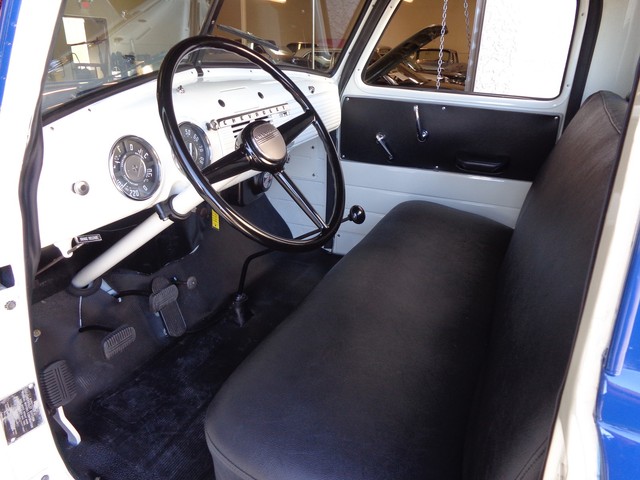 The extensive restoration has been done over the past few years.  It was completely disassembled down to the frame.  The body was completely taken apart and stripped.  The frame and suspension were sandblasted to bare metal and repainted.   The cab and each panel was repainted to its original Mariner Blue and reassembled.  A new oak bed floor was installed along with all new weatherstripping, fender welting and all new chrome front to back.
