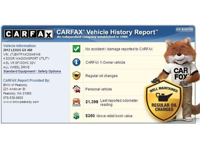 You are bidding on a very clean, one owner 2012 Lexus GX 460 with 21,529 miles that has a clean Carfax report.  This one owner Lexus was very well taken care of from its one previous owner and is now looking for its second owner to enjoy.  Loaded with options such as leather, navigation, back up camera, 3rd row seating, Bluetooth hands free, sport package, heated and cooled seats, sunroof, including many more.  If you have been looking for a very safe, luxurious Lexus SUV this is the perfect one to fit your needs.  This Lexus is showroom clean and needs nothing to pass state inspection so please call or email today if you would like to end the auction early.