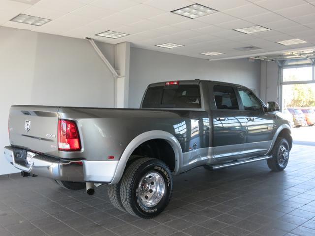 4WD. Turbo! GPS Nav! There is no better time than now to buy this trusty 2012 Dodge Ram 3500. This great Dodge is one of the most sought after used vehicles on the market because it NEVER lets owners down. It is nicely equipped with features such as 4WD, 10 Speakers, 115V Auxiliary Power Outlet, 4-Wheel Disc Brakes, ABS brakes, Air Conditioning, Alloy wheels, AM/FM radio, Audio memory, Auto-dimming Rear-View mirror, Automatic temperature control, Bumpers: chrome, CD player, Delay-off headlights, Driver door bin, Driver vanity mirror, Dual front impact airbags, Dual front side impact airbags, Dual rear wheels, DVD-Audio, Electronic Stability Control, Front anti-roll bar, Front Center Armrest w/Storage, Front dual zone A/C, Front fog lights, Front reading lights, Fully automatic headlights, Garage door transmitter, Heated door mirrors, Heated Front Seats, Heated front seats, Heated steering wheel, Illuminated entry, Leather steering wheel, Leather Trim 40/20/40 Bench Seat, Memory seat, MP3 decoder, Navigation System, Occupant sensing airbag, Outside temperature display, Overhead airbag, Overhead console, Panic alarm, Passenger door bin, Passenger vanity mirror, Power 10-Way Memory Driver & 6-Way Passenger Seats, Power Adjustable Pedals w/Memory, Power door mirrors, Power driver seat, Power Lumbar Adjust, Power passenger seat, Power steering, Power Sunroof, Power windows, Radio data system, Rear 60/40 Split Folding Seat, Rear seat center armrest, Rear step bumper, Remote keyless entry, Security system, Speed control, Split folding rear seat, Spray In Bedliner, Steering wheel mounted audio controls, Tachometer, Tilt steering wheel, Trip computer, Turn signal indicator mirrors, Variably intermittent wipers, and Voltmeter. - - - 2012 Ram 3500 4WD Crew Cab 169 Laramie