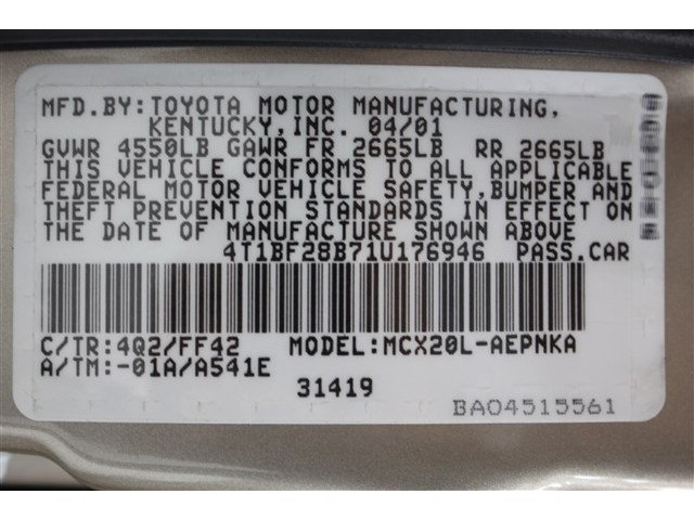 This great 2001 Toyota Avalon is the low-mileage car you have been trying to find. It is nicely equipped with features such as Avalon XL, 4D Sedan, 4-Speed Automatic, Desert Sand Mica, Ivory w/Leather Faced Seat Package, 4-Wheel Disc Brakes, 6 Speakers, ABS brakes, Air Conditioning, AM/FM radio, Bodyside moldings, Bumpers: body-color, Cassette, CD player, Driver door bin, Driver vanity mirror, Dual front impact airbags, Dual front side impact airbags, Four wheel independent suspension, Front anti-roll bar, Front Center Armrest w/Storage, Front Cupholders, Front dual zone A/C, Fully automatic headlights, Leather Power Seats, Outside temperature display, Overhead console, Passenger door bin, Passenger vanity mirror, Power door mirrors, Power steering, Power windows, Rear anti-roll bar, Rear seat center armrest, Rear window defroster, Speed control, Speed-sensing steering, Tachometer, Tilt steering wheel, and Variably intermittent wipers. Edmunds.com puts it clearly and simply, ...if you're looking for the most refined, best-built full-size sedan in its price bracket, your search should begin and end with the Toyota Avalon... The precision-tuned 3.0L V6 MPI DOHC powerhouse delivers substantial horsepower and torque to get you where you need to go...and fast! J.D. Power and Associates gave the 2001 Avalon 5 out of 5 Power Circles for Overall Dependability.
