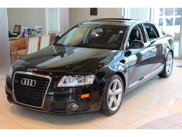 JUST TRADED! PRESTIGE PKG! SPORT PKG! A6 QUATTRO AWD IN BRILLIANT BLACK WITH BLACK LEATHER INTERIOR, 6-SPEED TIPTRONIC, PRESTIGE PKG (AUDI PARKING SYSTEM PLUS W/REAR VIEW CAMERA, FOUR SPOKE STEERING WHEEL WITH SHIFTER PADDLES, DRIVER MEMORY, AUTO DIMMING REAR VIEW MIRROR W/COMPASS, AUDI XENON PLUS W/LED DRLS, AUDI ADAPTIVE LIGHT W/CORNERING LAMPS, AUDI ADVANCED KEY, BOSE WURROUND SOUND, POWER TILT/TELESCOPING STEERING WHEEL, AUDI MMI NAVIGATION W/VOICE CONTROL, CD/DVD CHANGER, COLOR DRIVER INFORMATION SYSTEM), 18 INCH SPORT PKG (SPORT SUSPENSION, ALL SEASON TIRES, 18 INCH ALLOYS), COLD WEATHER PKG (HEATED REAR SEATS, HEATED STEERING WHEEL), ALL WEATHER FLOOR MATS, AUDI MMI MUSIC INTERFACE, SIRIUS SATELLITE RADIO, AUTOMATIC CLIMATE CONTROL, POWER GLASS MOONROOF, 12 WAY POWER SEATS, LEATHER INTERIOR, HEATED FRONT SEATS, BLUETOOTH, FRONT AND REAR FOG LAMPS, RAIN AND LIGHT SENSOR, POWER HEATED SIDE VIEW MIRRIRS, TPMS AND MUCH MUCH MORE! FULLY MAINTAINED AND WELL KEPT WITH RECORDS. PREVIOUS OWNER HAD MINOR DAMAGE TO REAR BUMPER (LESS THAN $500, RECORDED REPAIR ON FILE) PROFESSIONALLY REPAIRED. CARFAX FREE IN LISTING. SCHEDULE YOUR TEST DRIVE TODAY!
