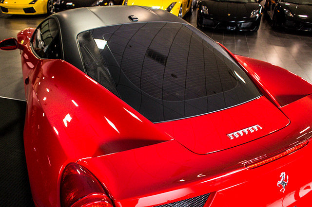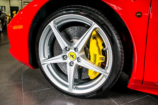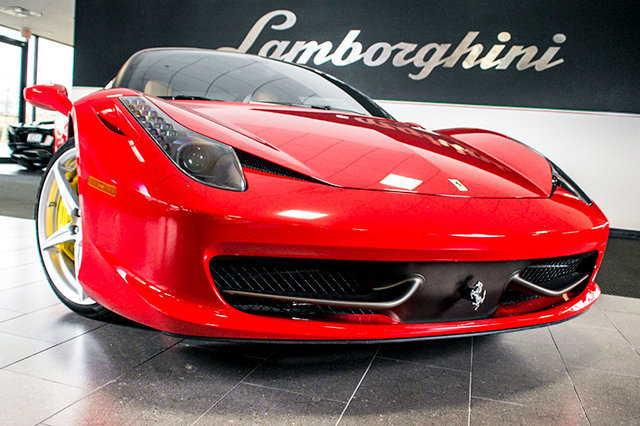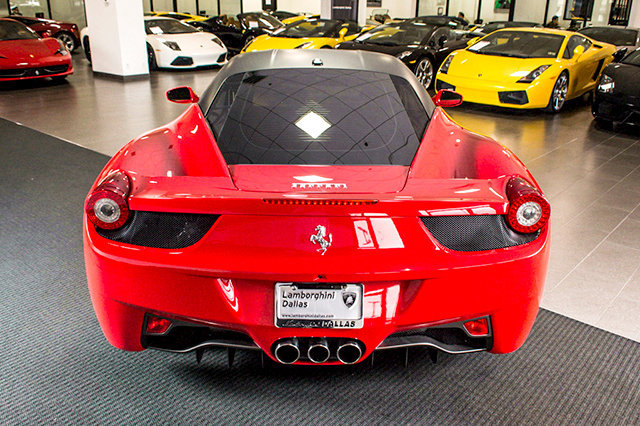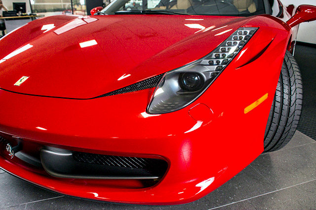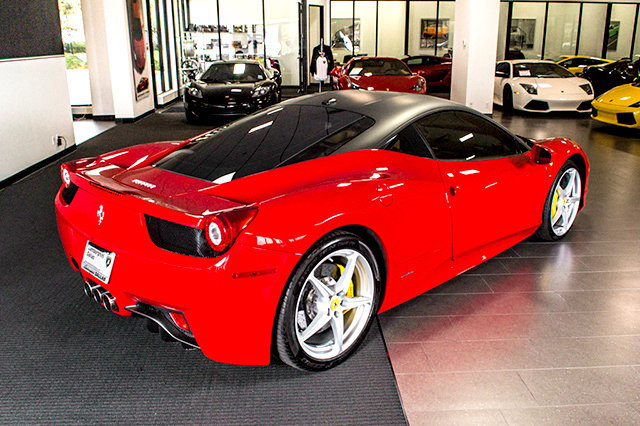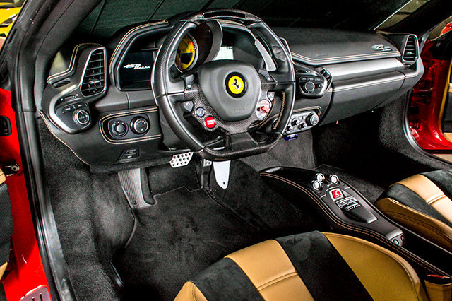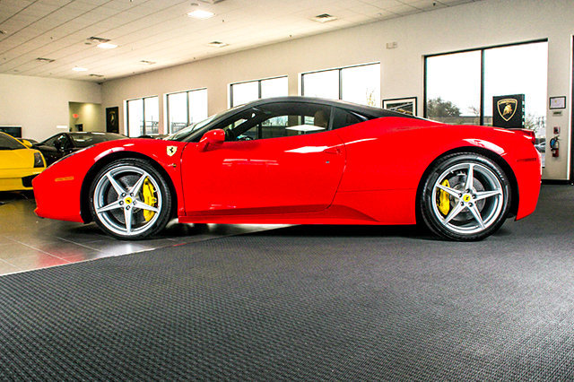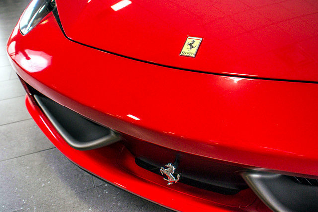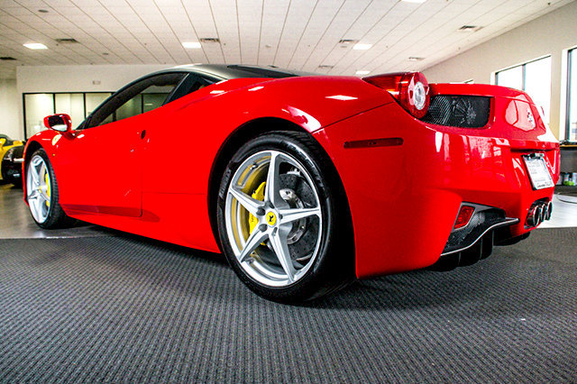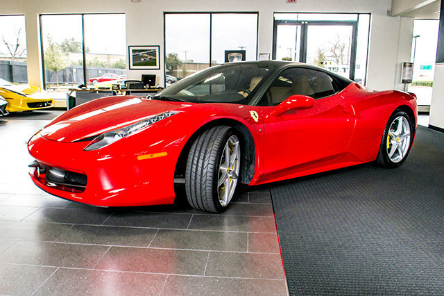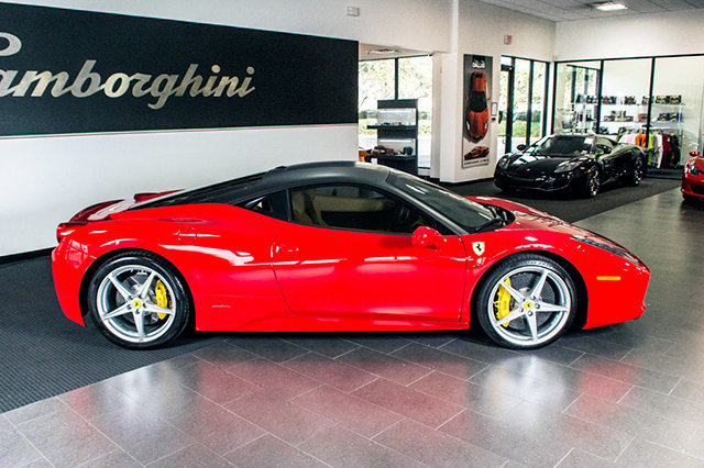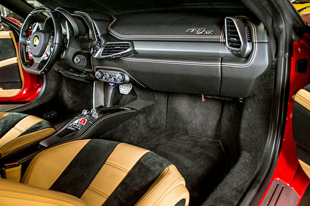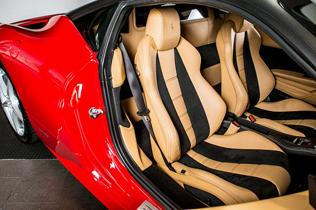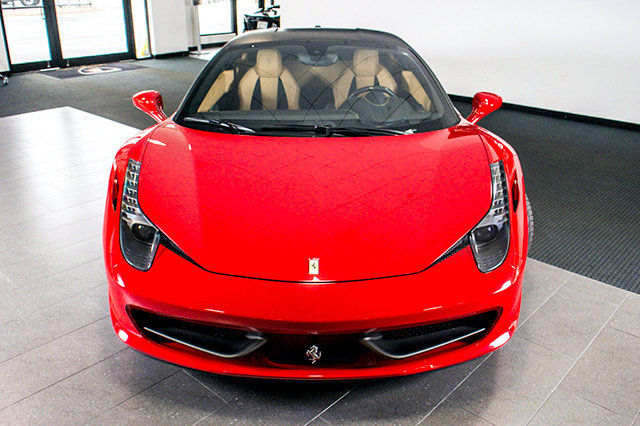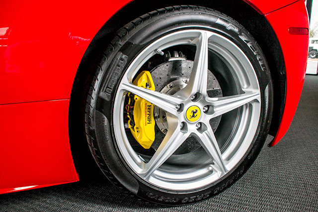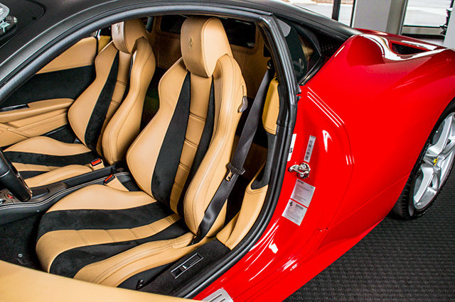 This is a Carfax certified 2013 Ferrari 458 Italia equipped with a 4.5L 561HP V8 engine and a 7-speed F1 (auto & paddle shift) transmission. This car is finished in a gorgeous Rosso Corsa (Bright Red) with Black wrapped top exterior and Tan full leather with Alcantara seat & door inserts along with Black and Yellow contrast stitching throughout.