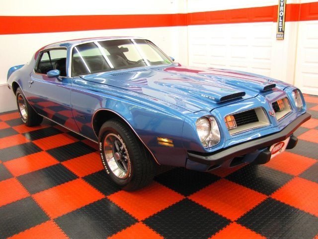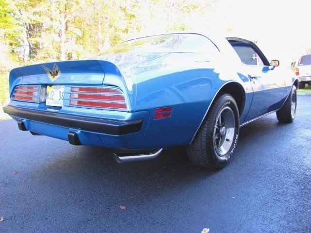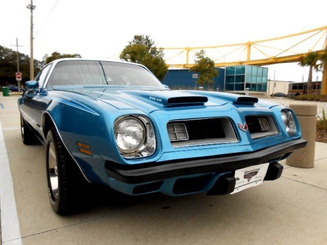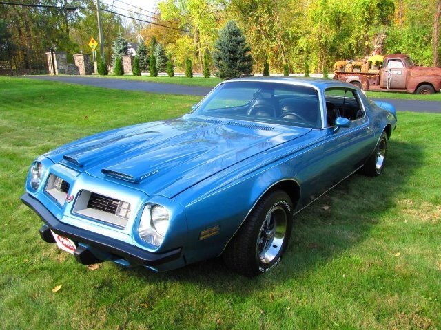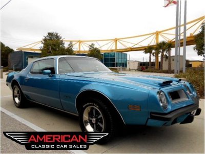 RESTOTRED AND SUPER CLEAN 1975 PONTIAC FIREBIRD 350 HO RAM AIR 4 SPEED. 62K ORIGINAL MILES, 3 OWNER CAR. FINISHED IN STUNNING CODE 24 BIMINI BLUE, WITH MATCHING SIDE STRIPE. A VERY NICE MOSTLY ORIGINAL UNMOLESTED CAR. COSMETIC RESTORATION PERFORMED IN 2010. CAR WAS STRIPPED AND REPAINTED USING SPIES HECKER BASE COAT/CLEAR COAT (HOOD WAS ADDED AT THAT TIME), NEW STRIPES, WEATHERSTRIPING. COMPLETE NEW BLACK DELUXE INTERIOR, ALL GAUGES REBUILT AS WELL (CLOCK EVEN WORKS). RESTORED STEERING WHEEL, RESTORED RALLYE II RIMS. NEW B.F. GOODRICH RADIAL T/A TIRES VERY RARE CONSOLE DELETE CAR. BORN WITH NUMBERS MATCHING DRIVETRAIN. WN CODE 350CI HO 4BL. HEAVY DUTY 4 SPEED TRANSMISSION. 3.23 POSI TRACTION REAR. OPTIONS INCLUDE: POWER STEERING, POWER DISC BRAKES, AM/FM STEREO, SPORT OUTSIDE MIRRORS, SPORT STEERING WHEEL, REAR SPOILER, RALLYE II WHEELS TACHOMETER AND GAUGES. DELUXE INTERIOR. FIREBIRD HAS GREAT SOUNDING FLOWMASTER EXHAUST AND CORRECT STYLE 2 1/2 INCH POLISHED STAINLESS EXHAUST TIPS. NICE CLEAN ORIGINAL UNDERCARRIAGE. NOT A 100 POINT SHOW CAR, BUT A VERY NICE AFFORDABLE 2ND GENERATION FIREBIRD MUSCLE CAR. EXCELLENT CONDITION ALL AROUND. DETAILED THROUGHOUT. ANY QUESTIONS PLEASE CALL 941-928-2339. WWW.AMERICANCLASSICCARSALES.COM WE SHIP, WE FINANCE, WE TRADE.