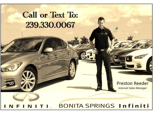 After shopping for a used low mileage 2010 QX 56, my wife found one she liked at Bonita Springs Infiniti. We worked with Mr. Preston Reeder from the very first contact and he exhibited the utmost professionalism, passion for his work, and customer awareness. He listened to our likes and concerns and worked with us all the way through a purchase long distance that included our first time shipping experience. We would not hesitate to recommend Preston and the dealership for a positive buying experience.