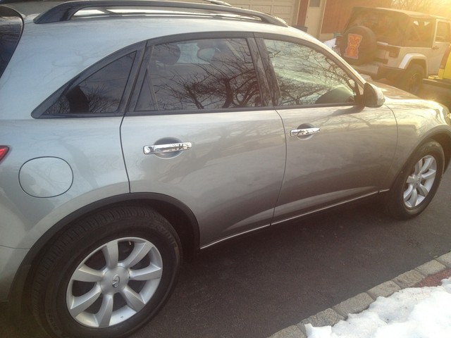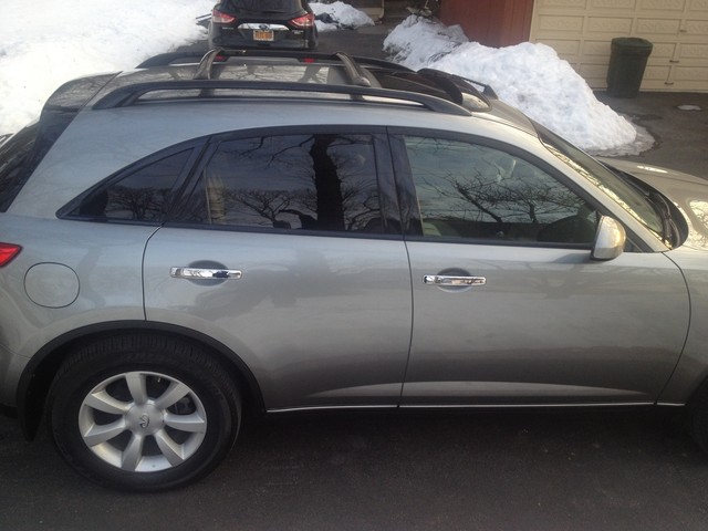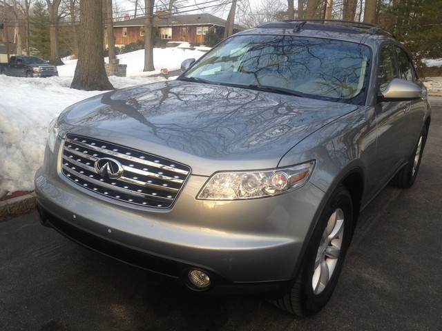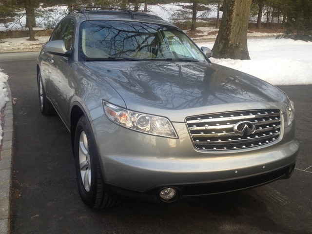 FOR SELL A VERY NICE FX35 I JUST HAD IT SERVICE RUNS GREAT NO ISSUSE CLEAN CARFAX EVERYTHING IS WORKING PRICED TO SELL ONLY 105K MILES CAR CAME FROM FLORIDA CLEAN STEEL GRAY WITH TAN LEATHER INTERIOR CALL ME AT 914 384 3314 TOURING PKG leather seat trim heated front seats w/high/low settings memory for driver seat/steering wheel/mirrors pwr driver lumbar support pwr tilt/telescopic steering wheel heated mirrors pwr tilt/slide sunroof w/one-touch open/close & safety reverse Bose 300-watt (11) speaker audio system HomeLink garage door opener w/rolling code feature auto on/off headlamps steering wheel audio controls black roof rails •3.5L DOHC SMPI 24-valve V6 aluminum engine •5-speed automatic transmission w/OD, manual shift mode, snow mode •Traction control system (TCS) •Vehicle dynamic control (VDC) •All wheel drive •Advanced front midship platform •4-wheel independent suspension •Front/rear stabilizer bars •P265/60R18 all-season tires •18" aluminum-alloy wheels •Pwr rack & pinion steering •4-wheel pwr disc brakes •Electric brake force distribution (EBD) w/brake assist •4-wheel anti-lock braking system (ABS) •23.8 gallon fuel tank •Dual chrome exhaust finishers •Tool Kit