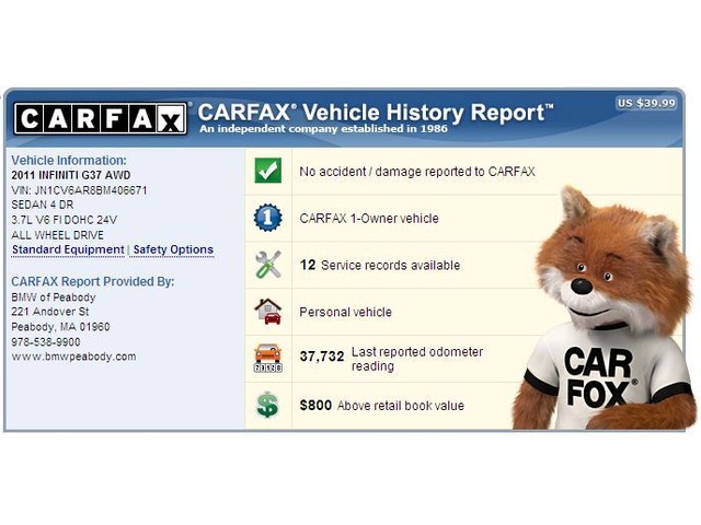 You are bidding on a one owner 2011 Infiniti G37X sedan with 40,741 miles that has a clean Carfax report.  This one owner G37x is loaded with options such as AWD, navigation, back up camera, Bluetooth, heated seats, moonroof, keyless entry, and the list goes on.  If you have been looking for a well kept, owe owner 2011 Infiniti G37x this is the perfect one for your needs.  Other than a small scuff on the left side of the rear bumper and a small scratch on the driver side rear door this car is very clean and has no stories.  This car is ready to pass state inspection and needs nothing mechanically so please call or email if you would like to end the auction early.