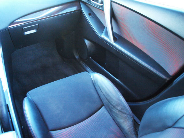 Mazda Speed3 is Highly Furnished with Features such as: Leather and Cloth Inlay Sport Seats, Power; Windows, Door Locks, Mirrors, and Driver's Seat, Bluetooth Hands-Free Phone System, Leather-Wrapped Steering Wheel with Audio and Cruise Controls, Fog Lamps, Rear Spoiler, and Alloy Wheels.