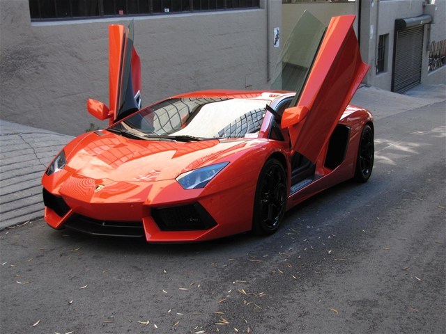 2012 Lamborghini Aventador Coupe. Arancio with Black interior with only 2100 miles.Pear Effect. Rims Shiny Black. Transparent Engine. Lambo Sound. Multifun.steering wheeel. T-Engine Cover In.Sportivo interior. Park assist.(sensors+.radar dectector and much more! Call for special finance and lease packages