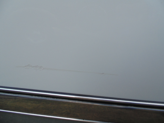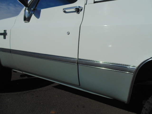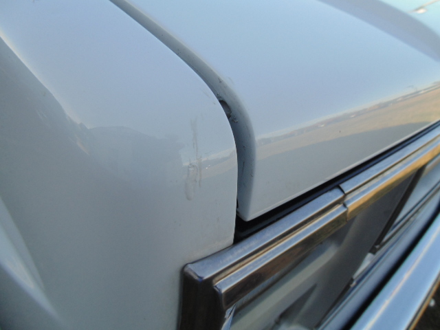 Only Flaws that I see are ( and I snapped pictures of each flaw listed): 6 cracks in the dash, hole in drivers seat bottom, 6 inch scratch on passenger door, 1/2 inch scratch on front nose of passenger fender, tiny tiny spots on tops of chrome bumpers (have to be within arms reach to see), a few tiny tiny stone chips down low in the gray areas and the rear window works fine just needs assistance going down keeping it level (goes up perfect on its own). Runs out and drives perfect, breezed through Virginia Inspection with no problems.