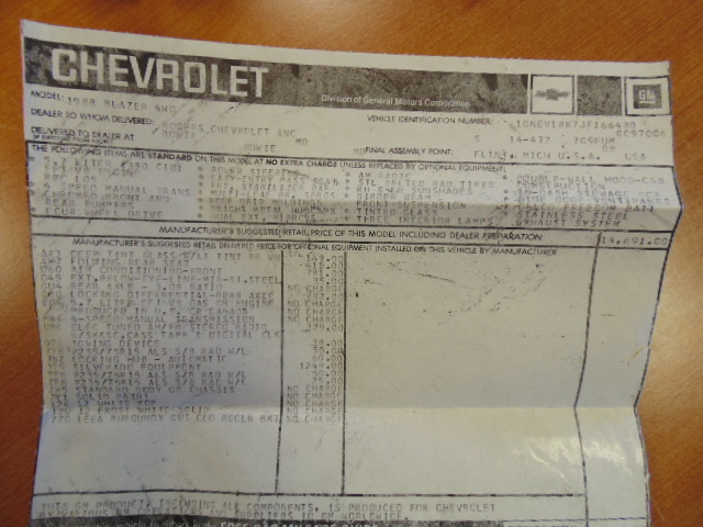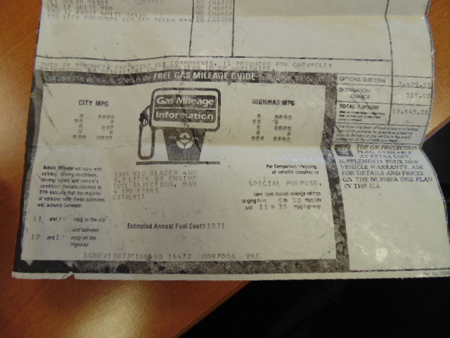 WE SPECIALIZE IN 4x4 SUPER DUTY DIESELS BUT I COULDN'T PASS CHUCK NORRIS UP!!! SUPER NICE AND SUPER COOL 1988 Chevrolet Silverado K5 Blazer 4x4 with a 4-Speed Manual Transmission, the 5.7L V8 gasoline engine and ONLY 68K ORIGINAL Miles. WE HAVE THE ORIGINAL OWNERS MANUAL AND THE ORIGINAL WINDOW STICKER that will be shown in the photos. I HOPE SOMEONE WITH A GARAGE PURCHASES THIS BLAZER, 26 YEARS AND STILL IN THIS CONDITION!!! WOW!!! I DO NOT HAVE A BUY IT NOW PRICE BUT I AM ALL EARS, I WILL END THE AUCTION FOR THE RIGHT OFFER!!!