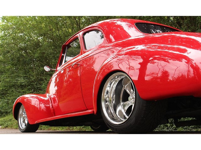 We will start off with the exterior of the Coupe. The body was taken off the grame and took all apart and reworked before preassembly to assure a good fit and finish. It was then pulled back apart and painted in the Victory Red base Coast with a lot of clear that has been buffed and polished to a mirror finish. When the restoration was done new glass, window felt, and weather stripping was installed. The tail lights were updated to LED and the Headlights were updated to Halogen. The fuel tank was relocated and a pop up access was added. To ensure a kick ass look they put 20x14 American Racing Wheels on the rear and 18x7 on the front with new tires.