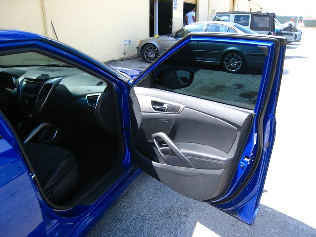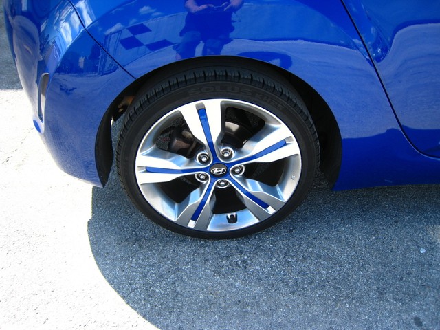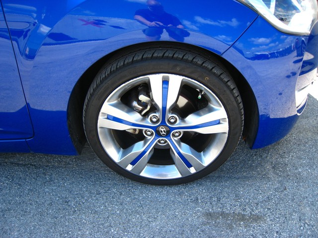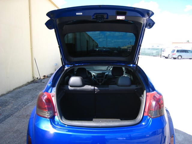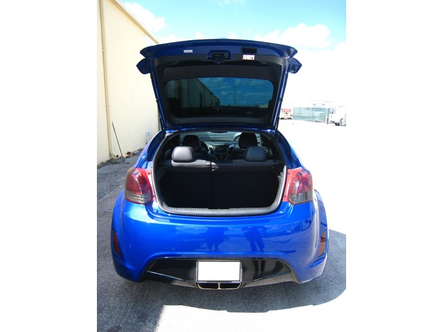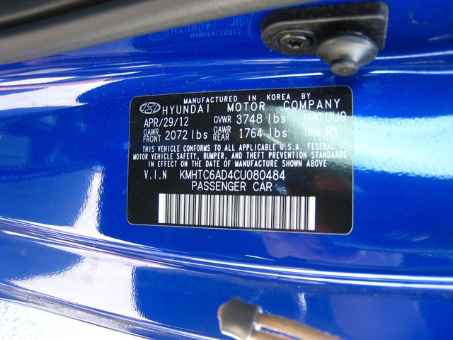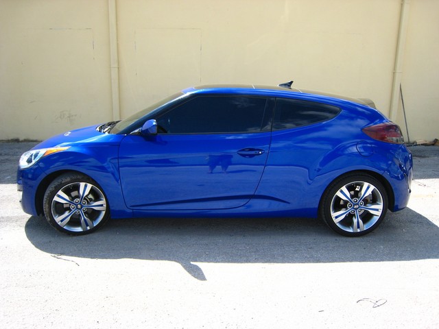 This sexy 2012 Hyundai Veloster Ecoshift DCT is finished in Mararthon Blue with a Black interior. This 6-speed Ecoshift Dual Clutch Transmission with Paddle Shifters, Dual Continuous Variable Valve Timing, and Active ECO System & Hillstrat Assist Control is loaded. The first package is the Style Package which includes the 18' Alloy Wheels, Chrome Grill Surround w/ Piano Black Highlights, Front Fog Lights, Panoramic Sunroof, Piano Black Interior Accents, Dimension Premium Audio w/ 8 Speakers, External Amp & Subwoofer, Leatherrette Bolster Seats & Door Inserts, Leather Wrapped Steering Wheel and Shift Knob, Alloy Pedals, Driver Auto Up Windows. The second package is the Tech Package which consists of Unique 18' Alloys w/  Painted Inserts, Backup Warning Sensors, Navigation System w/ Rearview Camera, Automatic Headlights, Proximity Key Entry w/ Eletronic Push Button Start, 115V Outlet. SOme other features are Carpeted Floor mats, a Cargo Net and auto Dimming Rearview Mirror and Homelink.