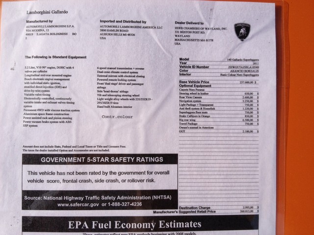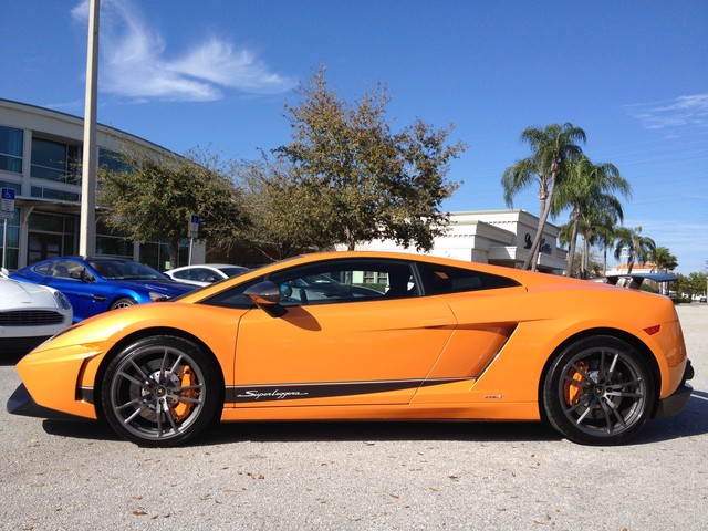 We are pleased to offer this 2011 Lamborghini Gallardo Superlegera. It came to us by way of trade-in on a new McLaren. This Raging Bull is finished in Arancio Borealis over Nero Superleggera. The optional features are: Steering Wheel in Leather, Rear-View Camera, Navigation System, Light Package + Transport, Anti Theft System and Homelink, Superleggera Floor Mats, Orange Brake Calipers, Big Rear Wing and Travel Package.