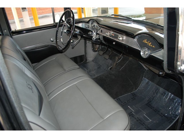 Inside two-tone Leather Interior Is Like New, featuring Chevy's Classic 55 insignias on the back of each seat! The two-tone pattern continues from the front to the rear seating and door panels. The seats are all in excellent like new condition. The interior shows no staining or rips. The door panels, kick panels and headliner are all equally as nice with no wear to be found!! Imagine Jumping Back into This Great Looking Chevy and Bringing Back Those Old Days of Cruising!!