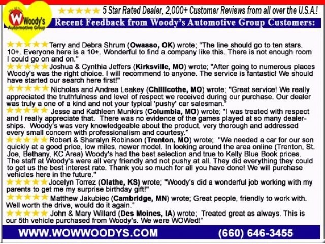 Woody's Automotive Group is the highest customer rated dealership in the greater Kansas City area.
