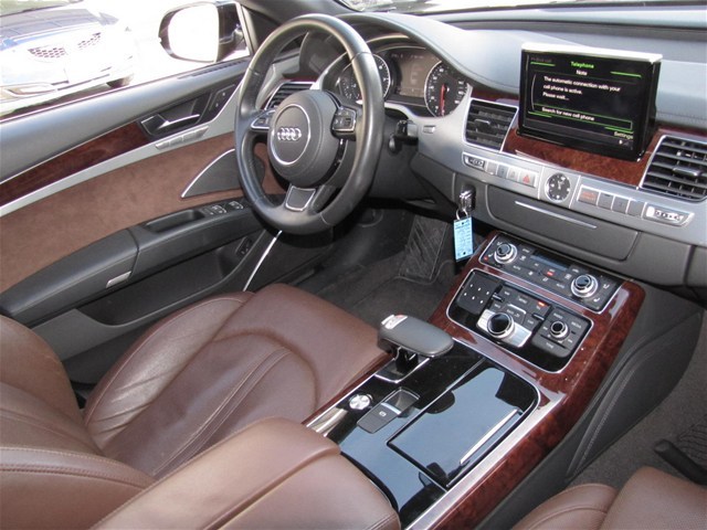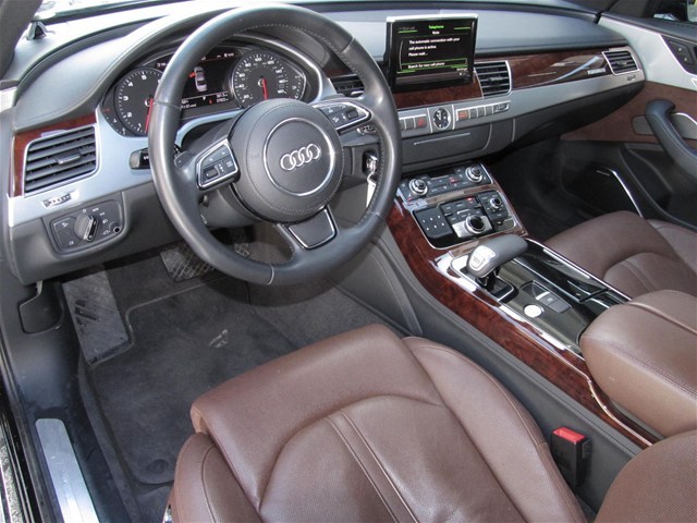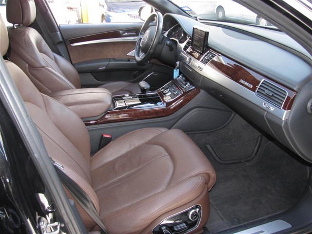 2011 Audi A8 4.2 Quattro AWD. Black. 39919 miles. Phantom Black Pearl/Nougat Brown. Center Console. Door Armrests. Airbag Cap. Leather-coloured stitching. Dual-ppane acoustic & security glass. Front filler panel. Premium package. Bang & Olufsen advanced sound system. Full led headlights. Power trunk (open & close) Call for special finance packages.