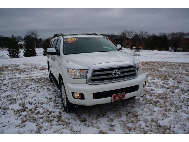 7 Year / 100,000 mile Warranty, Toyota Certified, 6-Speed Automatic Electronic with Overdrive, 4WD, 3rd row seats: split-bench, A/V remote, ABS brakes, Alloy wheels, Automatic temperature control, Distance-Pacing Cruise Control, Electronic Stability Control, Entertainment system, Front Heated Bucket Seats, Garage door transmitter: Homelink, Headphones, Heated door mirrors, Heated rear seats, Illuminated entry, JBL Synthesis AM/FM 4-Disc CD w/Navigation, Memory seat, MP3 decoder, Navigation, Outside temperature display, Overhead console, Power moonroof, Remote keyless entry, Roof rack, Security system, Steering wheel memory, Steering wheel mounted A/C controls, Steering wheel mounted audio controls, Traction control, and Turn signal indicator mirrors. Tired of the same dull drive? Well change up things with this outstanding 2010 Toyota Sequoia. Climb into this Sequoia for a smooth and silky ride that is sure to impress. Designated by Consumer Guide as a Recommended Large SUV in 2010. Toyota Certified Pre-Owned means you not only get the reassurance of a 12mo/12,000 mile Comprehensive warranty, but also up to a 7yr/100,000-Mile Powertrain Limited Warranty, a 160-point inspection/reconditioning, 1yr Roadside Assistance, trip-interruption services, rental car benefits, and a complete CARFAX vehicle history report.