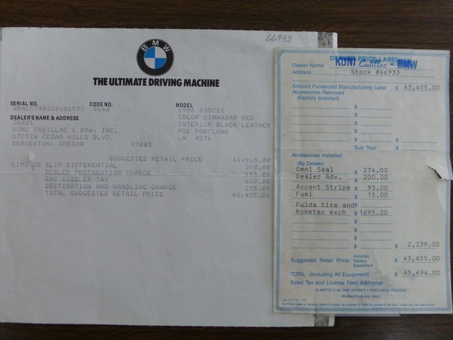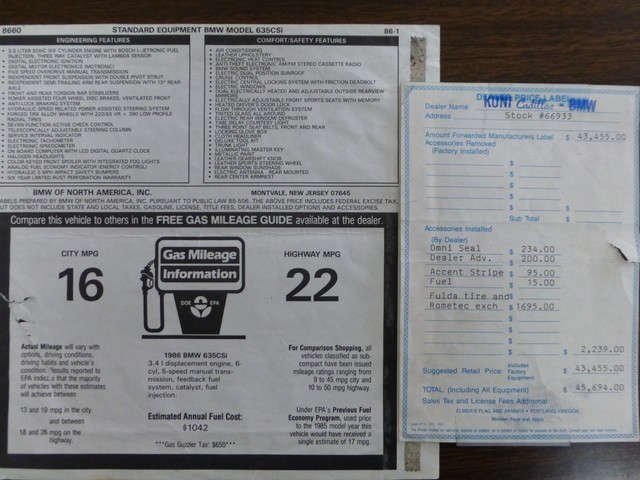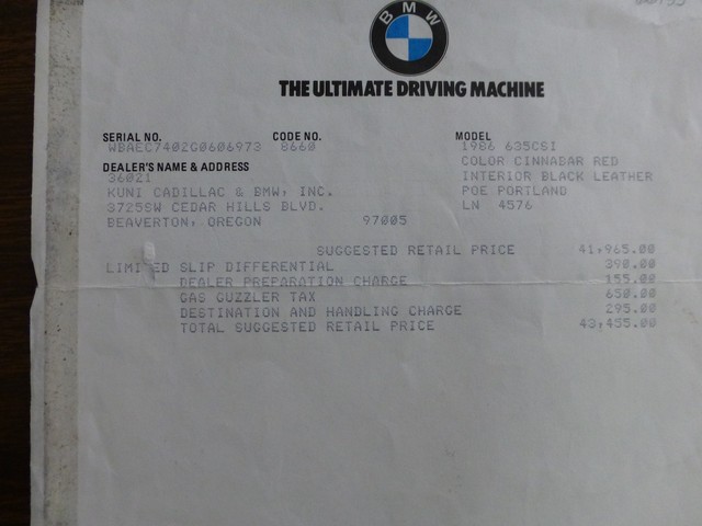 This is a beautiful 1986 BMW 635 CSI, all original in exceptional condition. This great little BMW was bought new at KUNI CADILLAC BMW in Beaverton Oregon and has been in the northwest all it's life. The car is rust free and is as solid as they come.