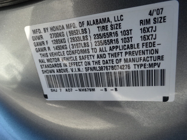 • VIN: 5FNRL38767B074276