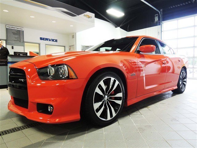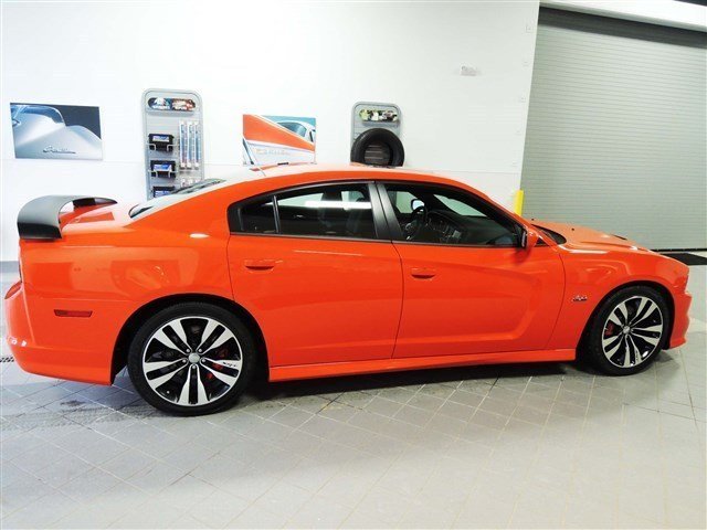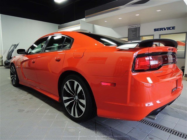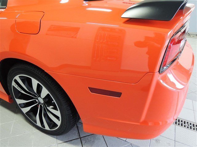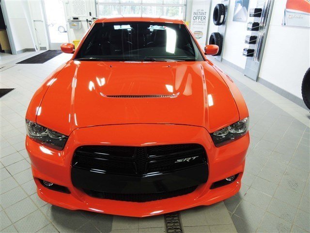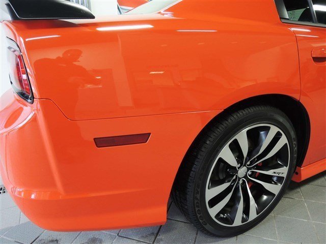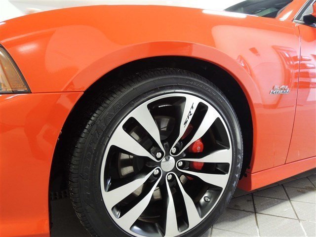 Beautifully appointed in Hemi Orange Pearl Coat and Black Perforated Leather interior. This beautiful car is absolutely perfect and ready to go. Was a previous Chrysler company owned vehicle. Comes with the balance of the factory warranties. Currently stored indoors in our heated showroom.