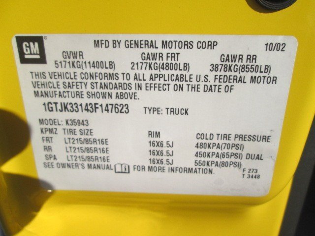 VIN: 1GTJK33143F147623 Stock Number: 3F147623 Mileage: 92254