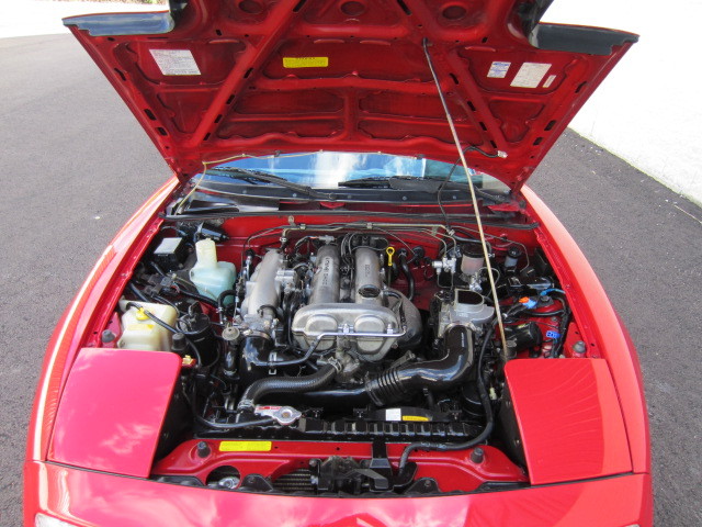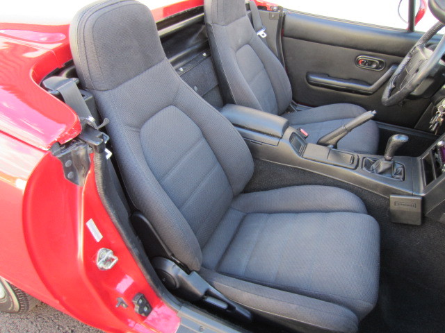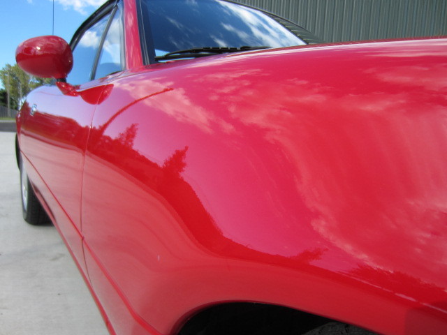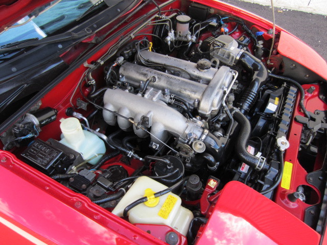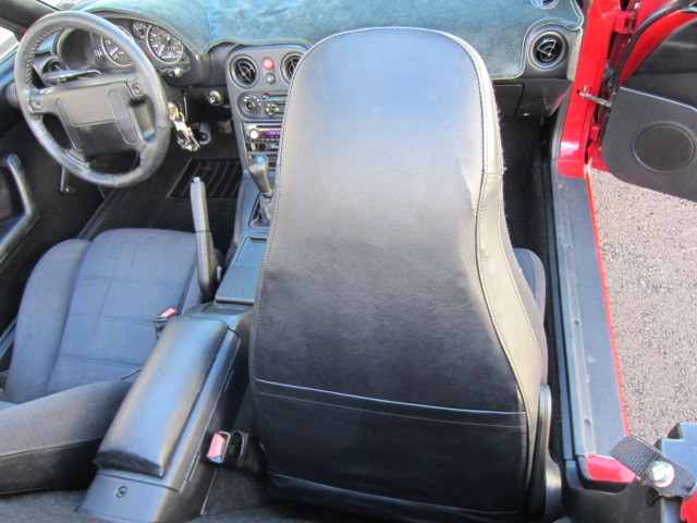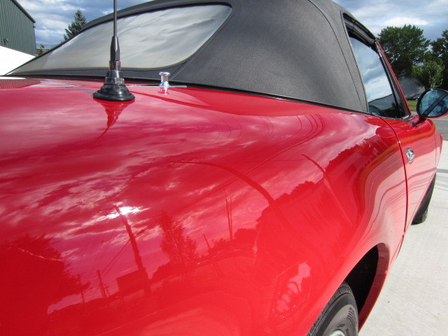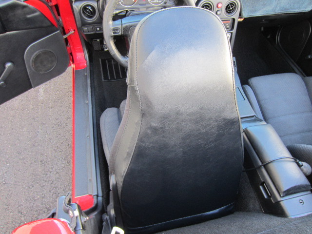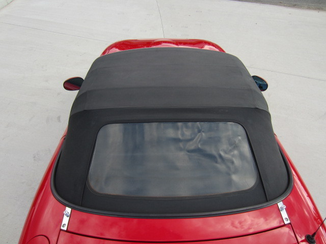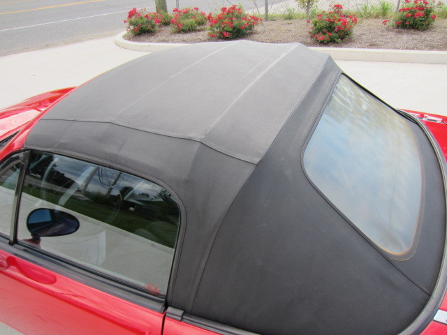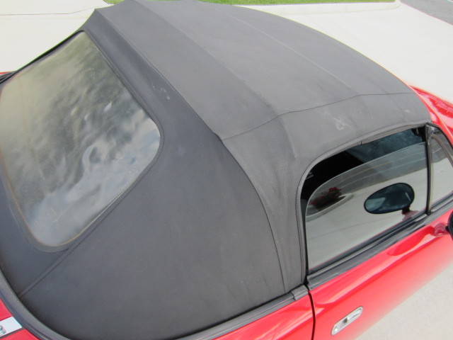The body is in great shape. The red color really sets this car apart and makes it look extra nice. Car is equipped with alloy wheels with plenty of tread on the tires. Additional features include bra for the front (not installed), matching color hard cover over the convertible top, leather cover over the convertible top and a matching color scoop replacing the driver headlight. There are also splash guards installed on all 4 wheels and a full size car cover specifically for this vehicle. The only issue with the exterior is the minor rip in the rear plastic window(see pic). Otherwise, the car looks solid from the outside. You have to see it to appreciate it!!!