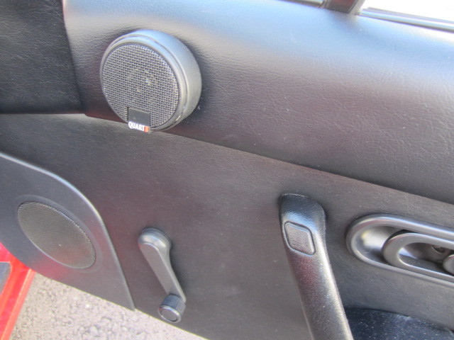 It's in great condition. The car comes with AM/FM radio and CD. There are aftermarket MB Quart speakers installed. These are German, high end, high quality speakers. The stereo gives off a clean sound. The car is equipped with cloth seats and driver's seat has a pump built in for lumbar support. The interior is clean and looks to have been maintained. You won't be disappointed with its condition!!!