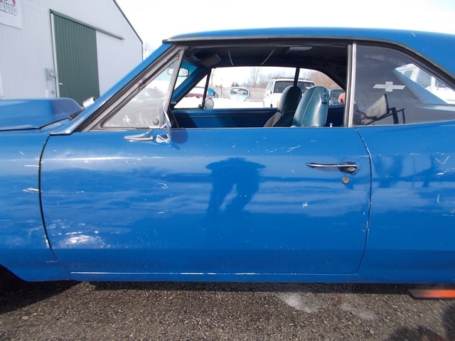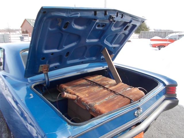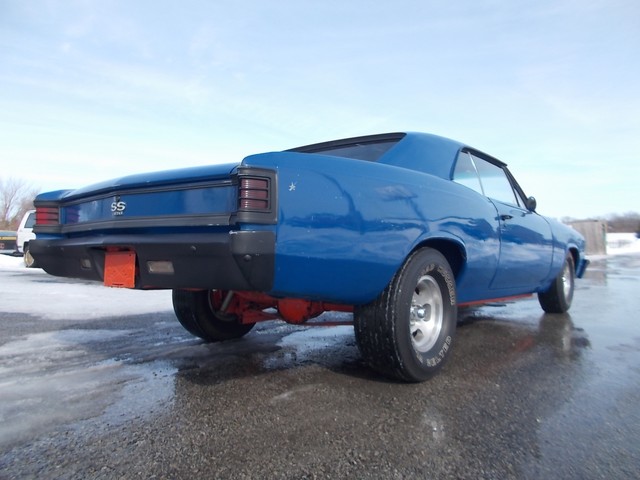 SOLID AND NICE RUNNING TRUE CHEVELLE SS WITH # MATCHING 396/350 HP AND MATCHING 12 BOLT WITH THE 355 POSI REAREND. TRANS LOOKS TO BE 68' MUNCI ROCK CRUSHER ACCORDING TO LAST OWNER. I THINK M21? THIS GUY BUILT THIS CAR FOR STREET RACING BACK IN 80's, AS I WAS TOLD. BUT HE GOT A FEW TICKETS AND PARKED IT. LOOKS LIKE IT HAS BEEN USED FOR A TABLE FOR MANY YEARS WITH ALL THE SCRATCHS BUT IT HAS ALWAYS BEEN A SOLID KANSAS BUILT CAR. ONLY RUST IT HAS OR EVER HAD IS BEHIND LEFT WHEEL. STILL HAS A 6" SPOT BEHIND THAT LEFT QUARTER, SEE PHOTO OF DROP DOWN. UNLESS HE REPACED THE REAR TRUNK FOR RUST AND THATS WHY ITS TUBBED.