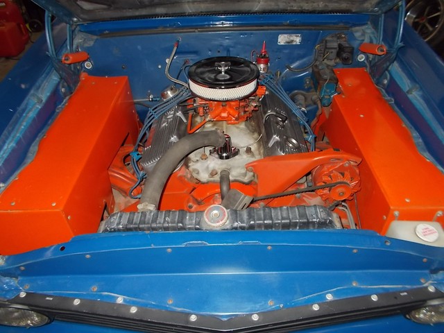 THE 396 ENGINE HAS A BIGGER THAN STOCK CAM BUT NOT HUGE.  HAS HEADERS. HAS A HOLLEY 780 DOUBLE PUMP CHEVY #3878261. ALSO HAS A POWER STEERING GEAR BOX BUT NO PUMP. THE GUY MADE A STEEL BOX AND RAN 2 HOSES TO IT TO LET FLUID CONTINUE TO FLOW WHEN YOU TURN KEEPING INSIDE CLEAN. LOOK AT THE FRONT MOTOR MOUNT THIS GUY MADE, NO TWIST THERE.