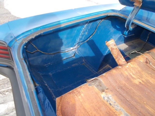 IT WOULD BE SIMPLE TO CHANGE TRUNK BACK TO STOCK AND JUST ADD INNER FENDERS OR GO PRO STREET ALL THE WAY WITH WHATS THERE. EITHER WAY ITS A NICE CAR TO BUILD. FRAME IS PERFECT IN THIS CAR AND NEVER WRECKED HARD. IT HAS BEEN BUMPED AROUND.