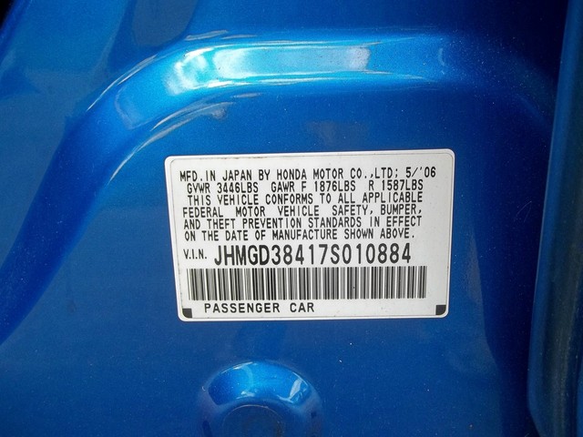 • VIN: JHMGD38417S010884