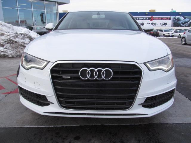 This vehicle is a 2012 Audi A6 3.0L Prestige with only 11,000 miles. It is White with a gray leather interior, and in near-perfect condition.