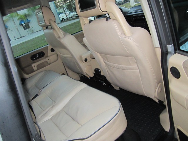 The interior of this truck is in over all good condition as well.  The dual-zone A/C works great.  The headliner isn't great, but acceptable.  One or two of the power lock actuators are loath to cooperate, and I couldn't get the aftermarket radio to come on.  All of the power windows work fine.  This truck has the SE7 option, which brings a fold-down third row of seats for extra occupancy.  This truck also features video screens in the back of the front seat headrests, for rear passenger entertainment (see pictures).  I didn't try them, but it appears that there is an input for your DVD player or video game machine, as well as an AC power outlet.  The pictures pretty much tell the story here as well, so be sure to check them all out for all the details on the interior.  This truck comes with the one key shown.