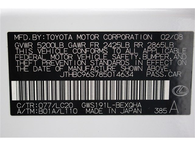• VIN: JTHBC96S785014634