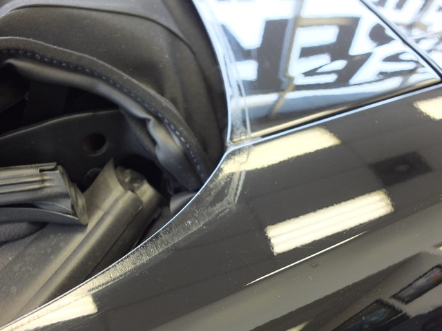 THE PAINT AND BODY LOOK EXCELLENT!  NO DENTS OR DINGS AND ONLY A COUPLE TINY TOUCHED-UP SCRATCHES AND/OR CHIPS.  THE ONLY PAINT BLEMISH OF NOTE IS SOME SCUFFS IN THE PAINT ON THE EDGE OF THE REAR DECK WHERE THE CONVERTIBLE TOP BOOT RUBS ON THE PAINT (SEE PIC BELOW).  OTHER THAN THAT, THE PAINT IS BEAUTIFUL!