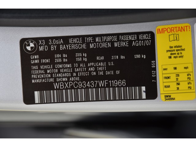 2007 BMW X3, CLEAN CARFAX, 3 OWNERS, WELL MAINTAINED, BEAUTIFUL!
