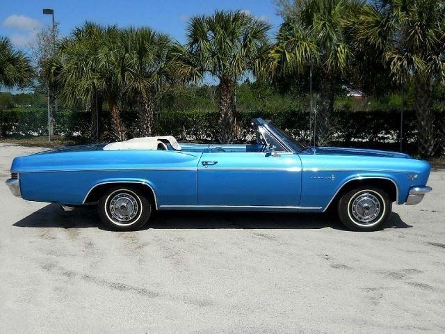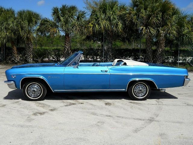 Sharp looking and smooth driving 1966 Chevrolet Impala with a 396 V8 engine, Power Steering, Power Top and Automatic Transmission. What a beautiful car. Restored by the owner of the local transmission shop we use. This great technician and knowledgeable car helped keep this car in tip top shape for the previous owner of the car. Luckily for us, Our friend referred the last owner to us when he finally decided to sell the car. What a nice car with very nice body and a shiny coat of Nassau blue paint finish. The engine was rebuilt a few years ago along with the transmission and lots of other do dads such as a new power convertible top, interior, chrome, many suspension parts, brakes, exhaust, etc. He never planned to sell the car as is the usual story, therefore spent about twice as much as the car is worth during restoration. Cars owned by folks like these are the best ones to catch when they are finished using there restored cars. Great car at a great price considering big block and all recent work. Please call for answers to specific questions. www.americnclassiccarsales.com We ship world-wide, we finance, we trade. 941-928-2339