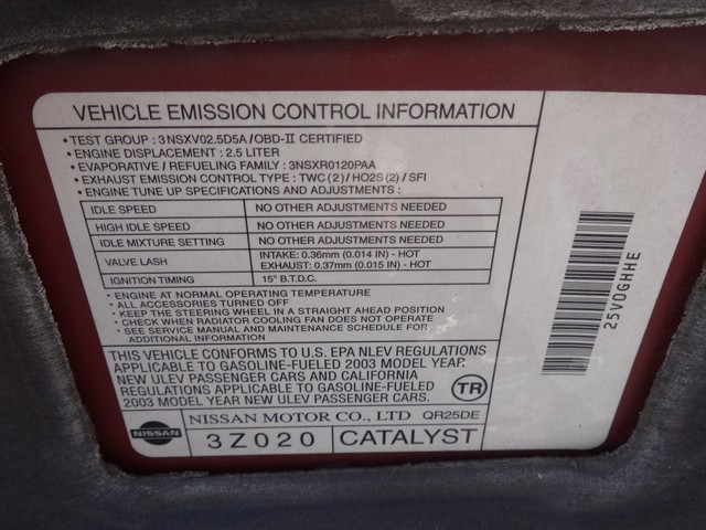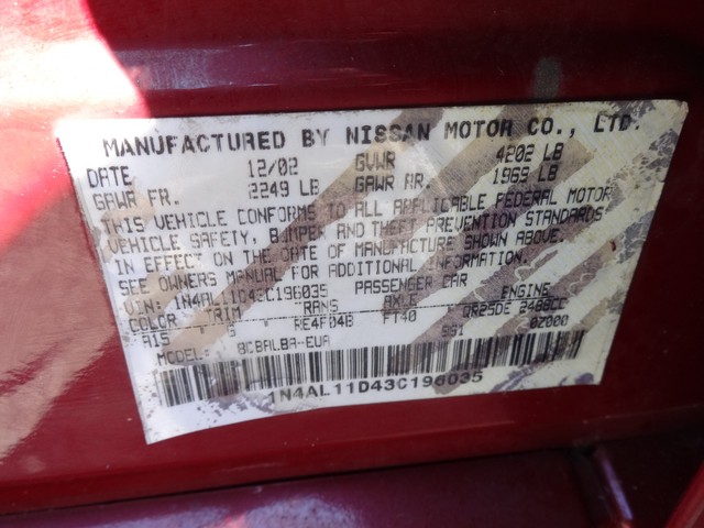NO RESERVE 2003 NISSAN ALTIMA 2.5 S SEDAN 2.5L 4-CYL AUTO ONE OWNER