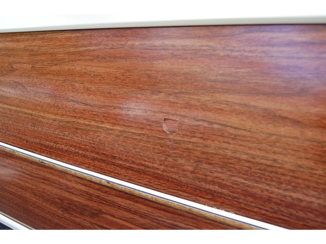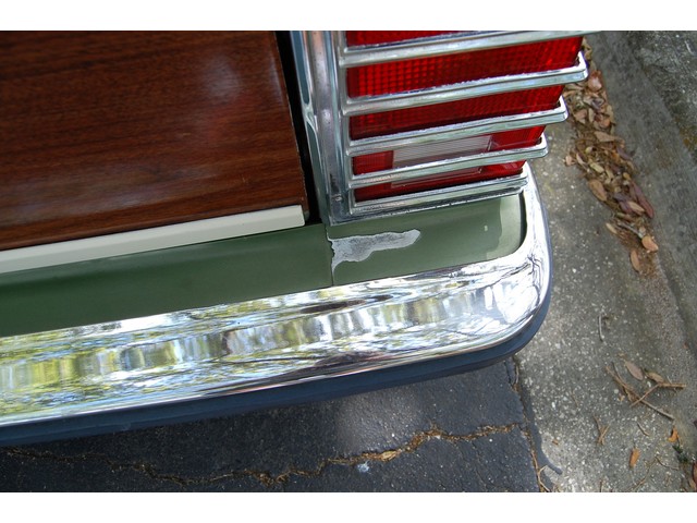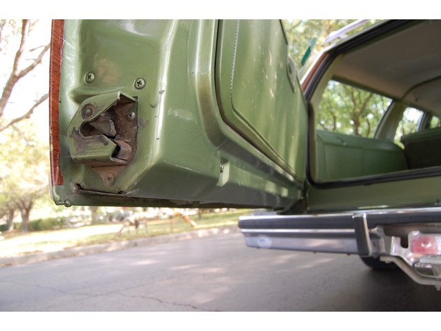 As you can see I tried my best to photograph the defects in the wood grain with a few patches that don't match 100%.  There is also a little body damage on the Passenger rear door at the bottom where it looks like there was a dent or two which they attempted to extract.  A little surface rust in passenger rear door jam.  There is NO 3rd row of seating, just the front seats and middle row.  The rear window does go up and down electrically.
