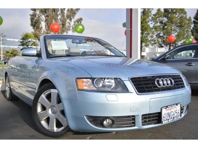 A REAL DIAMOND!!! LOW MILES AND LOADED CONVERTIBLE!!! High output 1.8T motor, automatic with manual shift option, plush leather seats, all power options, dual climate control, dual power and heated seats, audi symphony premium sound, wood trim, power top, factory premium alloys and more!!! ++ HOT CAR ++ 6-Speed Automatic with Overdrive Multitronic. Turbo! Perfect Color Combination! #1 INDEPENDENT DEALER IN CALIFORNIA!!! Thank you for taking the time to look at this fantastic-looking 2006 Audi A4. New Car Test Drive said, "...you'll have to look long and hard to find a car that blends driving satisfaction, safety, convenience, practicality, great finish and reasonable ownership cost as well as the A4..." When you say quality, Audi comes immediately to mind, and this Audi A4 is no exception. HURRY AND DON'T MISS THIS OPPORTUNITY.EAST COUNTY PRE-OWNED SUPERSTORE PROVIDES THE HIGHEST QUALITY VEHICLES AT THE LOWEST PRICES AVAILABLE. WE TRY TO HAVE THE LOWEST PRICES IN TOWN.... BY FAR!!! WITH OVER 500 VEHICLES AVAILABLE AND OVER 20 FINANCIAL INSTITUTIONS WE CAN GET YOU APPROVED ON THE CAR YOU WANT...... TODAY!! PLEASE CALL.