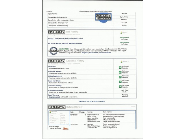 • Very Carefully Driven andvery Low 82k true miles which appear to have been highway driven (less than 8k miles per year avg.) Much Lower than National 12-15k Average travel.