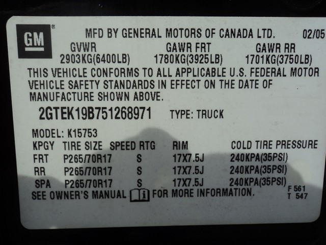 • VIN: 2GTEK19B751268971