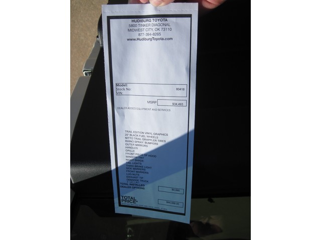 You must contact me and leave a partial payment of $500 that must be paid within 24 hours of auction close. Payment: Items will not be available for pickup or shipping until full payment is received and cleared by our local bank. Buyer has 5 days to pay. Financing: We can help. We offer a full range of lenders. Give us a shot, I bet we can get you a better rate. Warranty: This vehicle is covered under the full factory warranty unless it has been modified. All modifications will carry a full warranty that usually matches our factory warranty. Ask me for details. Availability:This vehicle is for sell on our lot. We reserve the right to pull this listing at anytime if the vehicle sells. If you are interested, I highly recommend contacting me(Randy) asap at 405-227-6083. Our vehicles almost always sell before the end of the auction. Your questions are always welcome. Please contact me anytime.