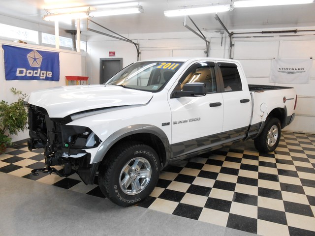 This 2011 Dodge Ram 1500 Quad Cab SLT 4x4 runs and lot drives and has many desirable features including; an powerful 5.7 liter V8 engine, automatic transmission, air conditioning, power windows, power locks, power heated mirrors, cruise, power driver's seat, trailer hitch, power rear sliding window, and satellite radio w/cd player. This vehicle has front and side damage.