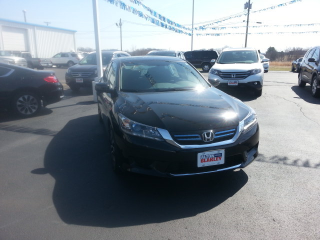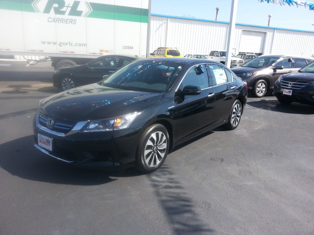 This is a 2014 Honda Accord Hybrid that is NEW. It is black with black cloth interior. This car get 50mpg City/45 Highway/47 Combined MPG.