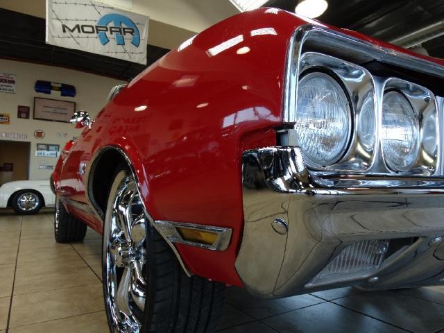 HERE IS THE CAR TO BE SEEN IN THIS SUMMER!!! JUST IN is this ABSOLUTEY EYE-CATCHING 1970 Oldsmobile Cutlass Convertible! Talk about a REAL Head-Turner ---- THIS IS IT!!! This 1970 Cutlass is finished in BRIGHT RED with a BLACK CONVERTIBLE TOP --- STEEL 442 RAM-AIR HOOD --- BLACK 442 STRIPES --- 442 DECALS --- and HIGH $$$ 22-INCH VISION CHROME WHEELS! Now --- this car is just a CUTLASS --- NOT A REAL 442. YES --- it has all the LOOK of a REAL 442 --- JUST NOT THE 442 PRICE!!! But as you're rolling down the street --- who will know the difference??? NO-ONE!!! The interior of this car is finished in TUXEDO Black to match the Convertible top and even has FRONT BUCKET SEATS! The interior has that ORIGINAL 100% Stock Appearance! Under the hood of this Muscle Car is some REAL MUSCLE --- a 455 BIG-BLOCK V8!!! Talk about a REAL ROCKET --- this is IT! The BIG V8 is mated to an Automatic Transmission! Not only does this car LOOK GREAT --- IT RUNS GREAT!!! This is NOT a temperamental CLASSIC like many others you will find--- this is a car you can jump in --- tap the gas --- hit the key --- and it idles nice and smooth! So if you're looking for a SWEET classic CUTLASS Convertible with that HIGH $$$ 442 LOOK at just a FRACTION of the price --- HERE IS THE CAR FOR YOU!!!