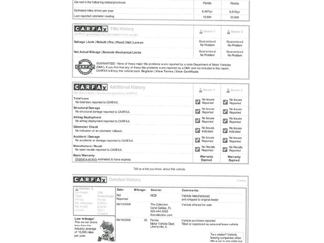 This previously owned vehicle would make you feel like you are the original owner.The mileage represented on this vehicle is accurate.This is a smoke-free automobile.There is no previous collision damage to this vehicle.This is a garage kept vehicle.This vehicle's engine is in perfect working condition.Great, smooth shifting transmission.All power equipment is functioning properly.The exterior finish on this automobile is in excellent condition.The interior is extra clean; it was very well kept.The tires are in good shape. Don't miss your chance to own this gorgeous low mile Florida beauty.