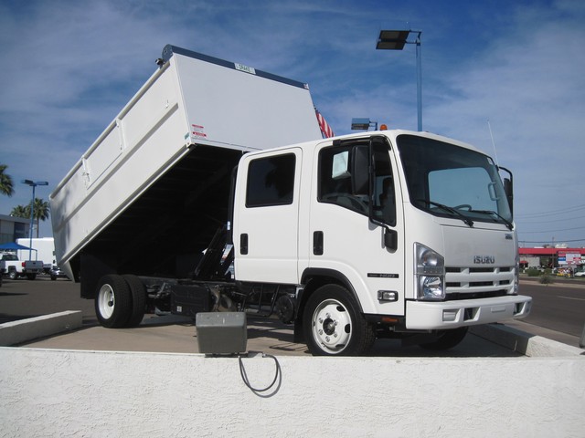 • 2014 ISUZU NQR CREW CAB DIESEL 14FT LANDSCAPE DEBRIS CONTRACTOR DUMP TRUCK NPR